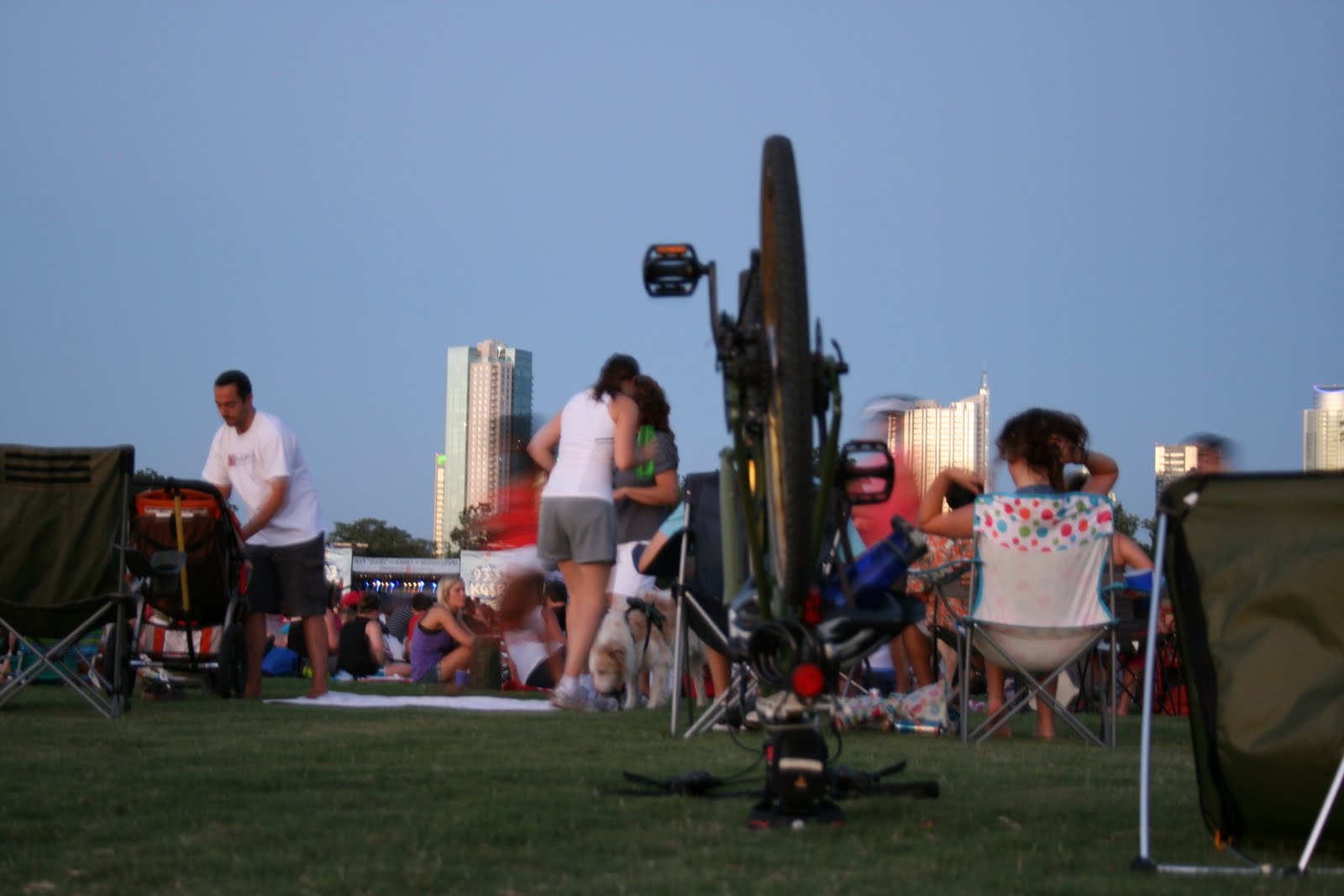 A local radio station hosts a free concert out at Zilker park every couple of weeks. After being cooped up inside all week thanks to the heat and to illness, we figured the fresh air would do us all some good. So we waited for the sun to hide behind the trees, loaded up the stroller, and headed down to hear one of my all time favorites, the Old 97's. The second we unbelted Augie from the constraints of his stroller, he was off! He made sure to meet everyone around us, and kept his daddy on his toes as he chased him around the entire park premises. He was finally able to slow him down enough using the allure of Amy's ice cream. A great, hot time was had by all.